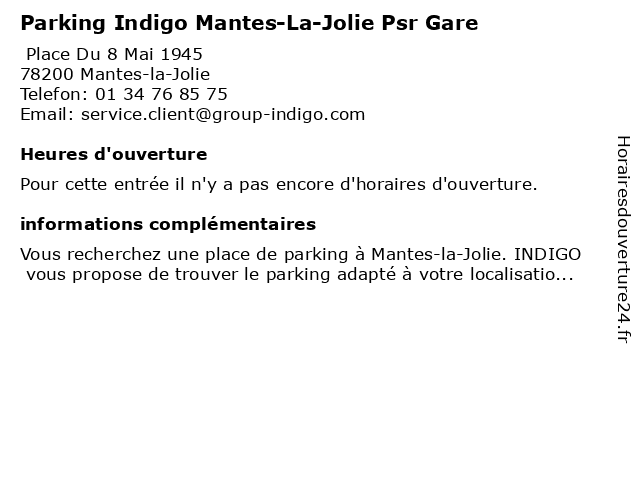 | Appeler Parking Indigo Mantes-La-Jolie Psr Gare | |