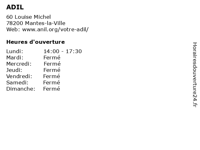 1 ADIL (Distance: 0,66 km) . Rue des Pierrettes, 78200 Magnanville adil, information, logement, services 2 ADIL (Distance: 2,21 km) 254 Boulevard du Maréchal-Juin, 78200 Mantes-la-Jolie adil, information, logement, services 3 ADIL (Distance: 15,35 km) 79 Boulevard Victor Hugo, 78130 Les Mureaux adil, information, logement, services 4 ADIL (Distance: 47,96 km) 46 Boulevard Edgar Quinet, 75014 Paris adil, information, logement, services 6 |