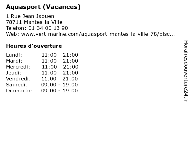 | Mercredi | 11:00-21:00 |