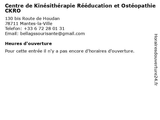 | Appeler Centre de Kinésithérapie Rééducation et Ostéopathie CKRO | |