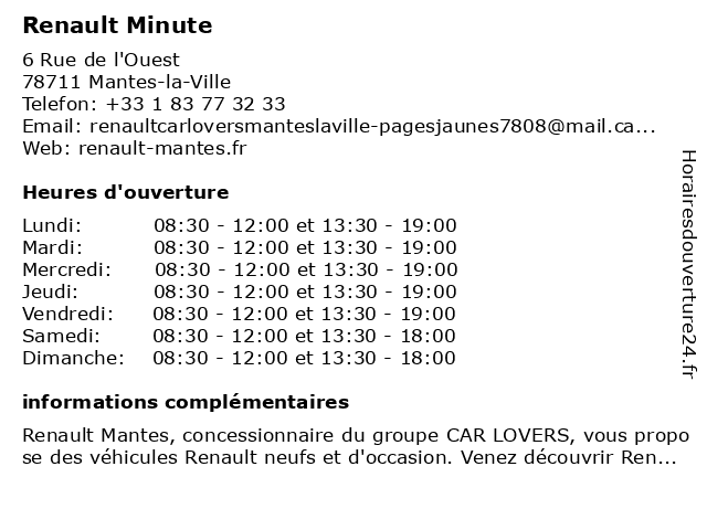 | Lundi | 08:30-12:00 et 13:30-19:00 |