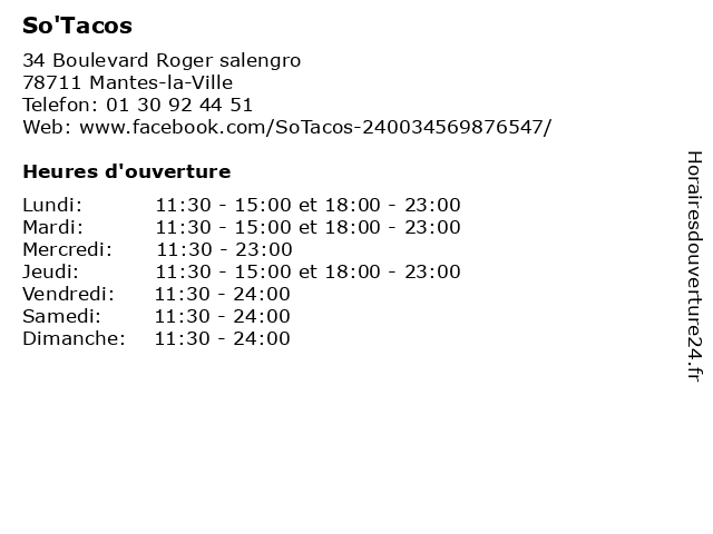 | Mardi | 11:30-15:00 et 18:00-23:00 |