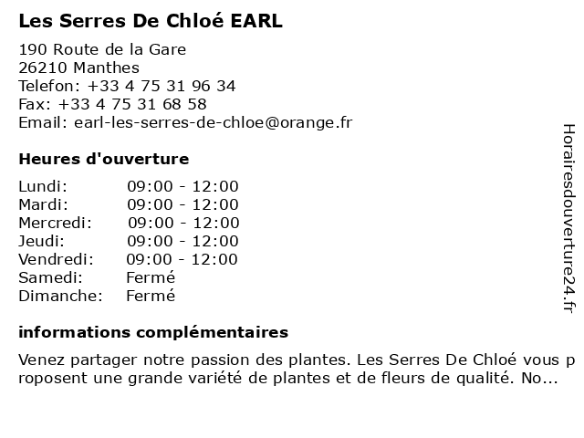 Termes de recherche pour Les Serres De Chloé EARL:les, de, serres, chloé, earl |