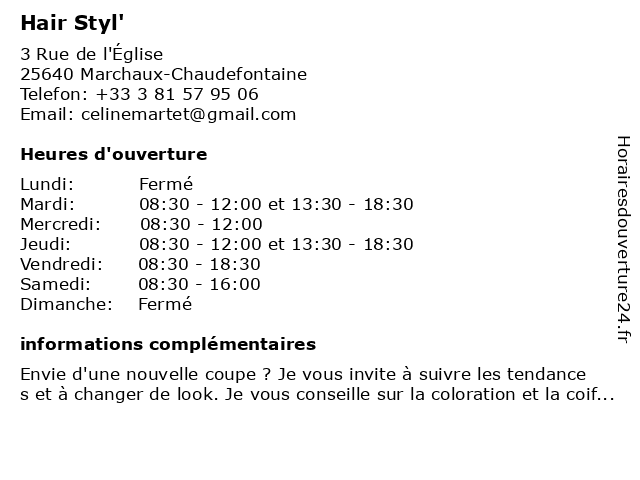 3 Style d'Enf'hair (Distance: 10,31 km) 128 Rue de Belfort, 25000 Besançon beauté, coiffure, d'enf'hair, salon, style 5 Nail Styl' Elena (Distance: 11,15 km) 6 Allée des Bruyères, 25000 Besançon beauté, elena, esthétique, manucure, nail, salon, spa, styl' 6 |
