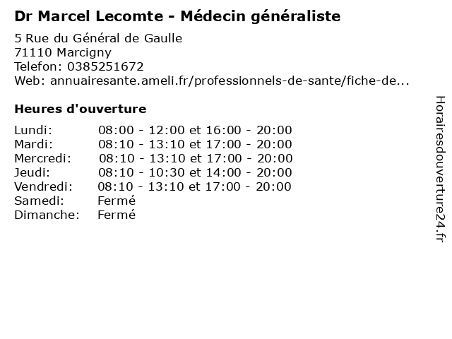 | Mercredi | 08:10-13:10 et 17:00-20:00 |