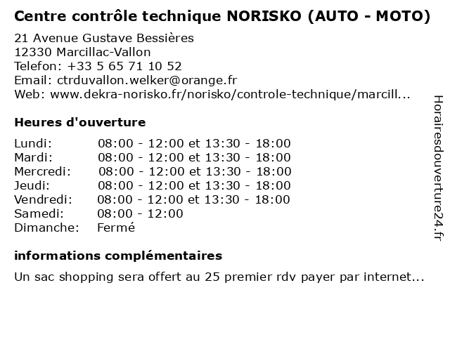 1 Centre contrôle technique NORISKO (AUTO - MOTO) (Distance: 15,77 km) 44 Route d'Espalion, 12850 Onet-le-Château 4x4, auto, camping car, centre, collection, contrôle, diesel, electrique, essence, gazole, moto, norisko, suv, technique, utilitaire, voiture 2 Moto Axxe - Elite Moto (Distance: 12,55 km) 74 Rue des Orfèvres,, 12850 Onet-le-Château accessoires, axxe, deux-roues, elite, entretien, marque, moto, motorcycle, motos 3 Sécuritest Contrôle Technique Automobile (Distance: 14,55 km) Rue des Pasiments, 12850 Onet-le-Château automobile, contrôle, sécuritest, technique 4 Sécuritest Contrôle Technique Automobile (Distance: 14,57 km) Avenue Joël Pilon, 12850 Onet-le-Château automobile, centre contrôle technique, contre visite, contrôle, contrôle pollution, contrôle technique, contrôle technique automobile, securitest, sécuritest, technique, véhicules léger 5 Contrôle Technique Automobile Serre (Distance: 16,03 km) ZA La Cayronie, 12110 Aubin automobile, contrôle, serre, technique 6 Centre contrôle technique AUTOCONTROL (Distance: 16,06 km) 10 Route de Sévérac, 12850 Onet-le-Château 4x4, autocontrol, camping car, centre, collection, contrôle, diesel, electrique, essence, gazole, suv, technique, utilitaire, voiture |