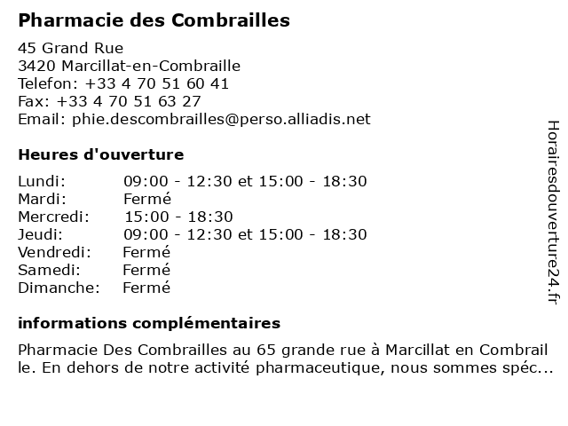 Termes de recherche pour Pharmacie des Combrailles:des, pharmacie, combrailles |