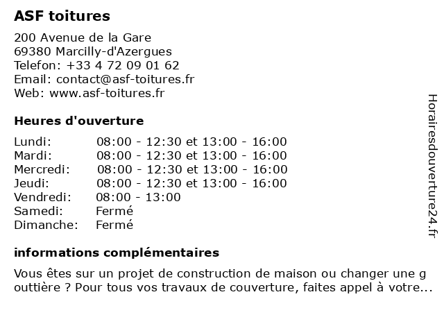 | Mercredi | 08:00-12:30 et 13:00-16:00 |