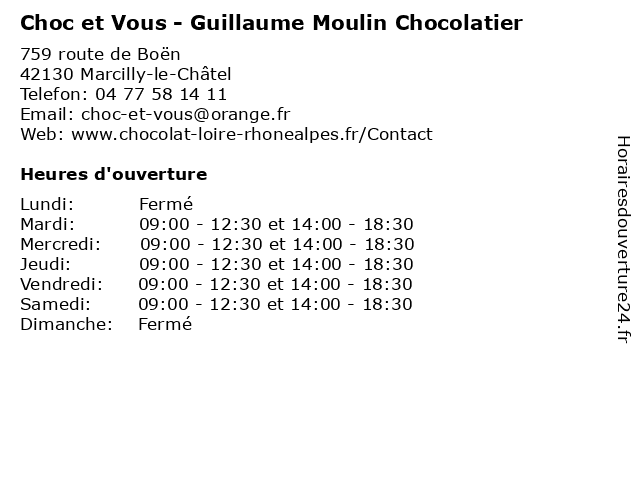 | Samedi | 09:00-12:30 et 14:00-18:30 |