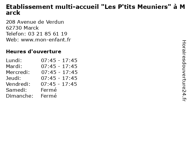 Termes de recherche pour Etablissement multi-accueil "Les P'tits Meuniers" à Marck:accueil, multi, p'tits, marck, etablissement, child care, caregivers houses, family home, home care, kindergartens, micro-nurseries, parental home, "les, meuniers" |