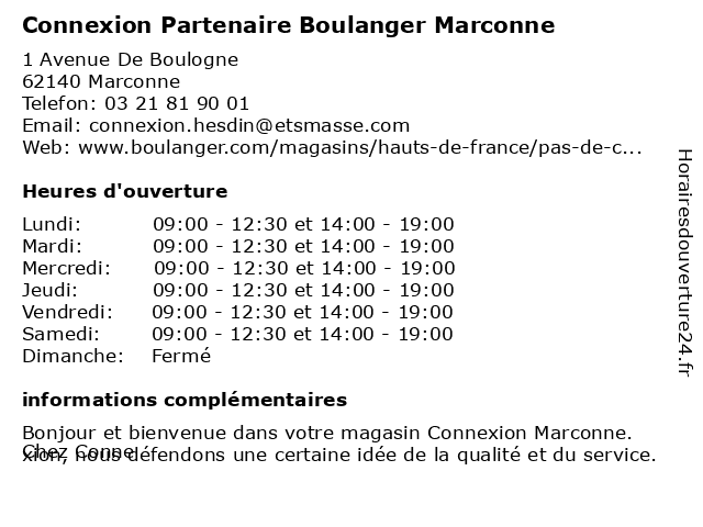 | Lundi | 09:00-12:30 et 14:00-19:00 |