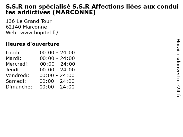 | Samedi | 00:00-24:00 |