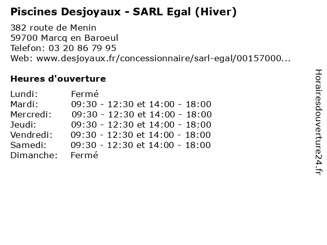 | Mardi | 09:30-12:30 et 14:00-18:00 |