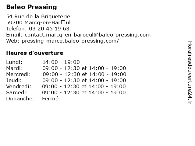 | Mercredi | 09:00-12:30 et 14:00-19:00 |