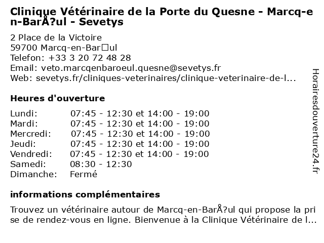 Termes de recherche pour Clinique Vétérinaire de la Porte du Quesne - Marcq-en-BarÅ?ul - Sevetys:en, la, du, de, marcq, porte, clinique, veterinaire, quesne, barå?ul, sevetys |