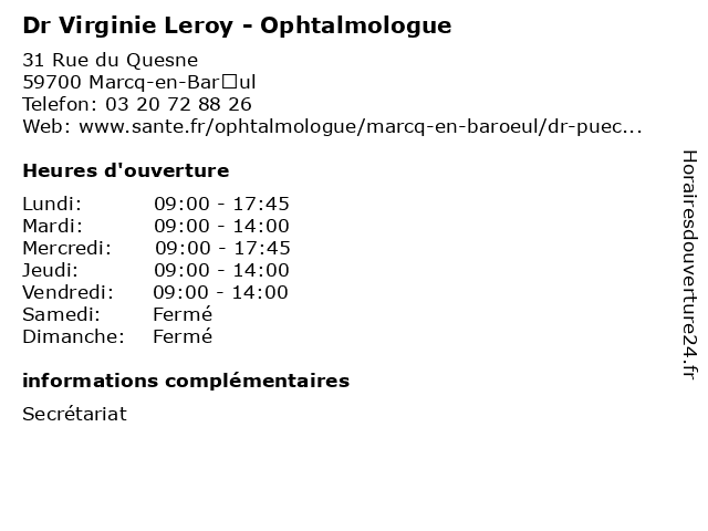 1 Dr Virginie Puech - Ophtalmologue (Distance: 0,00 km) 31 Rue du Quesne, 59700 Marcq-en-Barœul dr, ophtalmologie, ophtalmologistes, ophtalmologue, puech, virginie, vision 2 Dr Pascal Annonier - Ophtalmologue (Distance: 1,01 km) 71/7 Avenue Guynemer, 59700 Marcq-en-Barœul annonier, dr, ophtalmologie, ophtalmologistes, ophtalmologue, pascal, vision 3 Dr Virginie Fauth - Radiologue (Distance: 1,02 km) 199 Rue de la Rianderie, 59700 Marcq-en-Barœul consultation, docteur, dr, fauth, med, médecin, médecine, radiologue, secrétariat, traitement, virginie 4 Dr Thomas Desmettre - Ophtalmologue (Distance: 1,07 km) 187 Rue de Menin, 59520 Marquette-lez-Lille desmettre, dr, oeuil, ophtalmologue, sante, thomas, vision 5 Dr Clément Gruchala - Ophtalmologue (Distance: 2,36 km) 47 Avenue de Flandre, 59290 Wasquehal cabinet, clément, cof, d'ophtalmologie, des, dr, flandres, gruchala, ophtalmologie, ophtalmologistes, ophtalmologue, vision 6 Dr François Leuillette - Ophtalmologue (Distance: 2,36 km) 47 Avenue de Flandre, 59290 Wasquehal 59290, cof, dr, françois, leuillette, ophtalmologue, wasquehal |