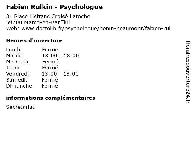 | Samedi | Fermé |