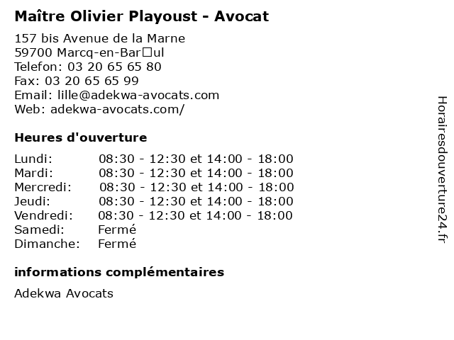 | Lundi | 08:30-12:30 et 14:00-18:00 |