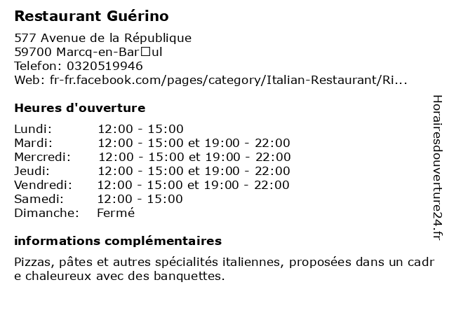 | Mardi | 12:00-15:00 et 19:00-22:00 |