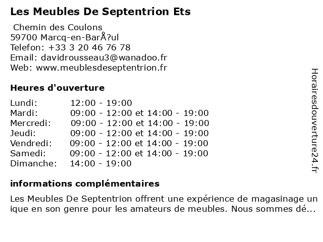 | Samedi | 09:00-12:00 et 14:00-19:00 |