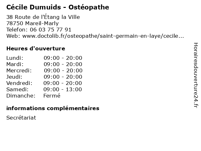 Termes de recherche pour Cécile Dumuids - Ostéopathe:mareil, marly, cecile, ostéopathe, dumuids, 78750 |