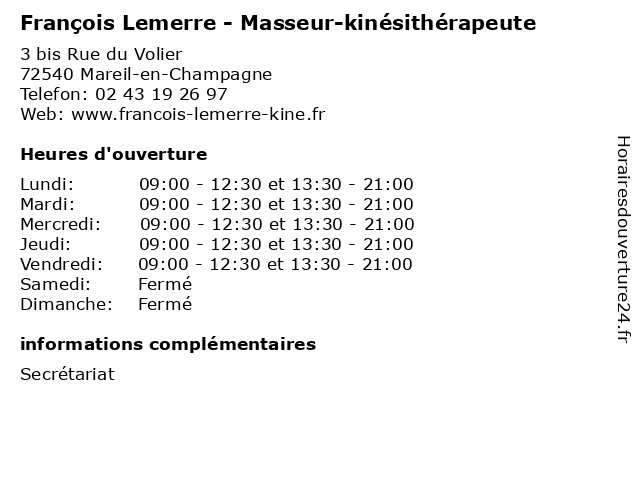 | Mardi | 09:00-12:30 et 13:30-21:00 |