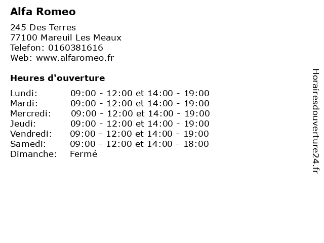 | Mercredi | 09:00-12:00 et 14:00-19:00 |