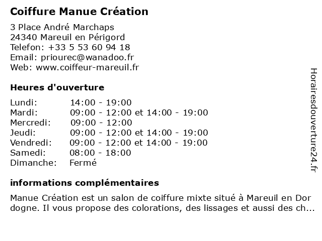 | Mardi | 09:00-12:00 et 14:00-19:00 |