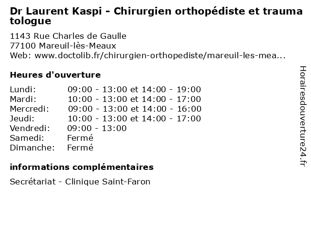 | Lundi | 09:00-13:00 et 14:00-19:00 |