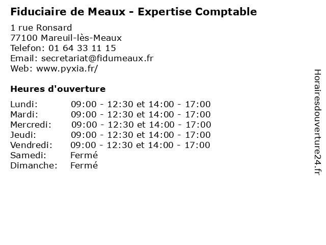 Lundi | 09:00-12:30 et 14:00-17:00 |