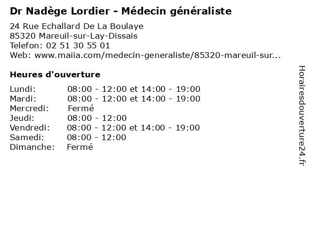 | Lundi | 08:00-12:00 et 14:00-19:00 |