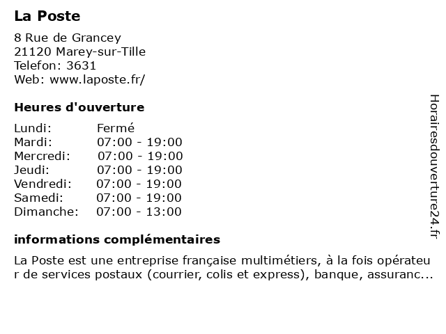1 La Poste (Distance: 5,58 km) 2 Rue de Travot, 21580 Avot express chronopost, la, poste, réexpédition internationale 2 La Poste (Distance: 8,89 km) 9 Place Des Halles, 21580 Grancey Le Chateau agence postale, courrier postal, expédition internationale, la, poste 3 La Poste (Distance: 8,93 km) 6 Rue Pauferi, 21580 Grancey-le-Château-Neuvelle express chronopost, la, poste, réexpédition internationale 4 La Poste (Distance: 10,81 km) 2 Place de la Mairie, 21120 Courtivron agence postale, courrier postal, expédition internationale, la, poste 5 La Poste (Distance: 13,10 km) 2 Rue Derrière l'Église, 21260 Selongey express chronopost, la, poste, réexpédition internationale 6 La Poste (Distance: 16,74 km) 2 Rue de Verdun, 52190 Le Montsaugeonnais agence postale, courrier postal, expédition internationale, la, poste |