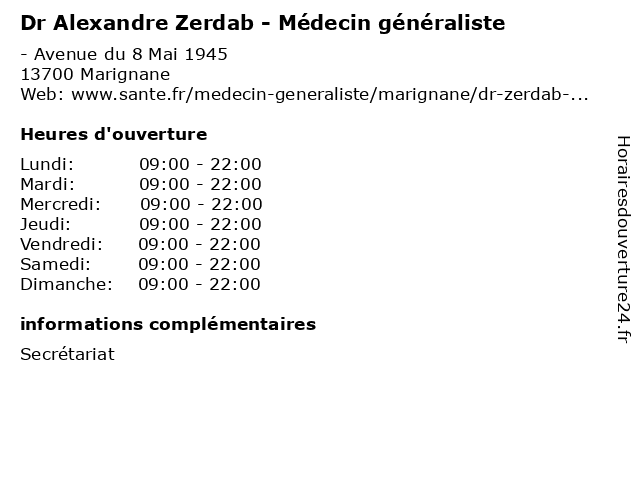 | Mercredi | 09:00-22:00 |