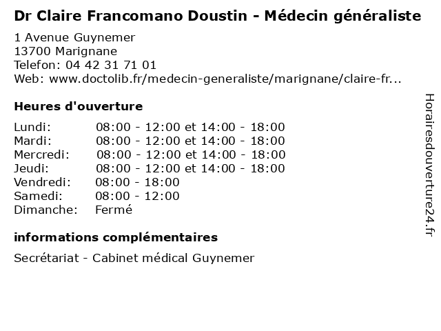 | Lundi | 08:00-12:00 et 14:00-18:00 |
