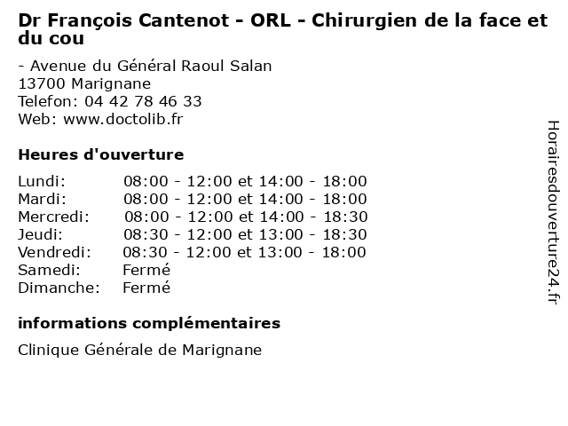 | Jeudi | 08:30-12:00 et 13:00-18:30 |