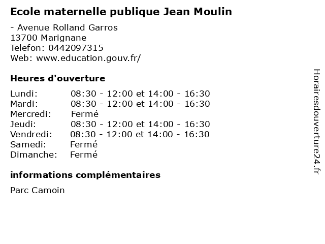 | Mardi | 08:30-12:00 et 14:00-16:30 |