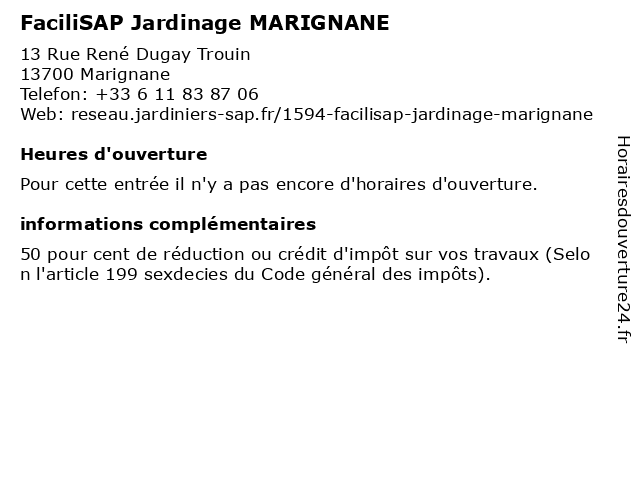 | Appeler FaciliSAP Jardinage MARIGNANE | |