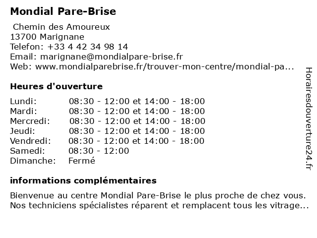 | Lundi | 08:30-12:00 et 14:00-18:00 |