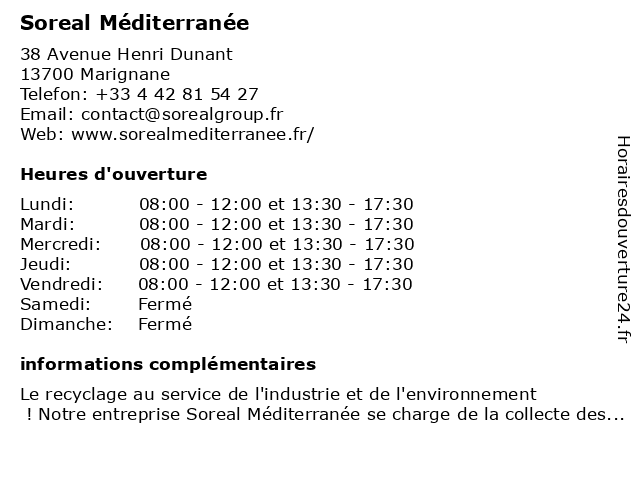 | Mercredi | 08:00-12:00 et 13:30-17:30 |