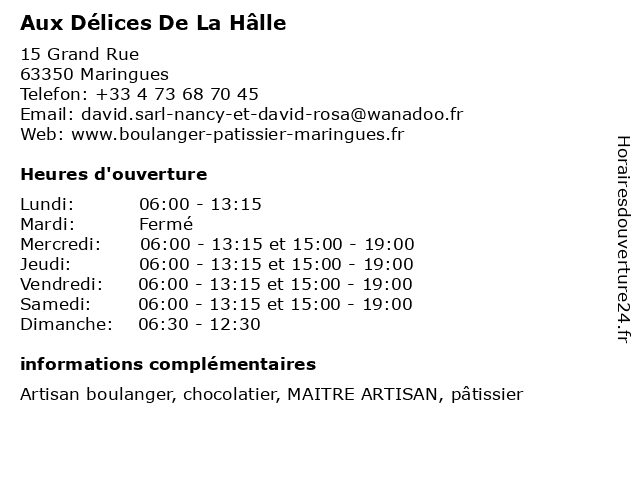 Horaires d'ouverture |