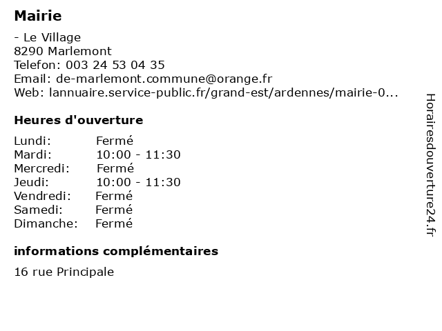 2 Mairie (Distance: 3,43 km) 7 rue de la Halle, 08150 Logny-Bogny administration, mairie, public, service 3 Mairie (Distance: 5,23 km) - Le Village, 08150 Aubigny Les Pothees administration, mairie, public, service 6 |