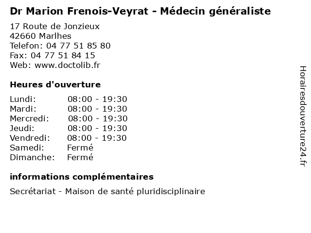 Termes de recherche pour Dr Marion Frenois-Veyrat - Médecin généraliste:de, maison, santé, soin, medical, marion, généraliste, marlhes, docteur, médecin, frénois, dr, veyrat |