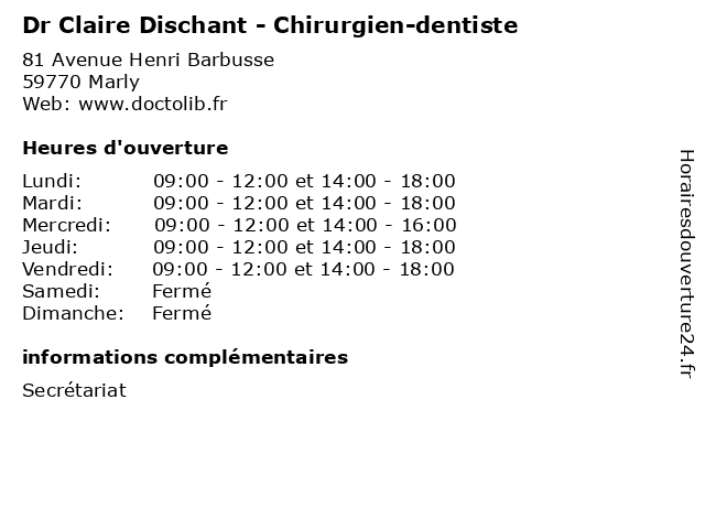 | Lundi | 09:00-12:00 et 14:00-18:00 |