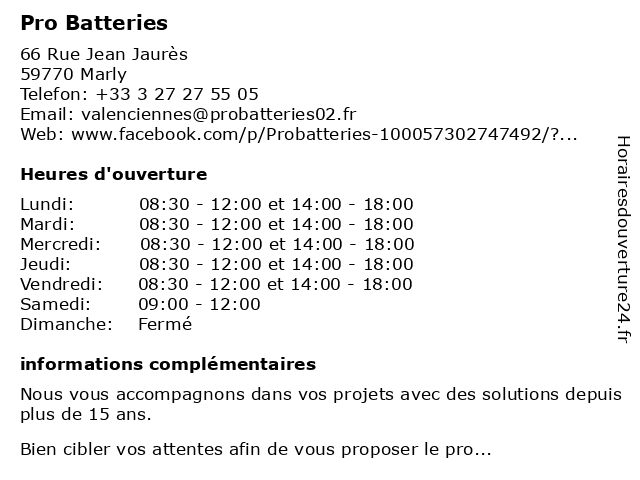 | Lundi | 08:30-12:00 et 14:00-18:00 |