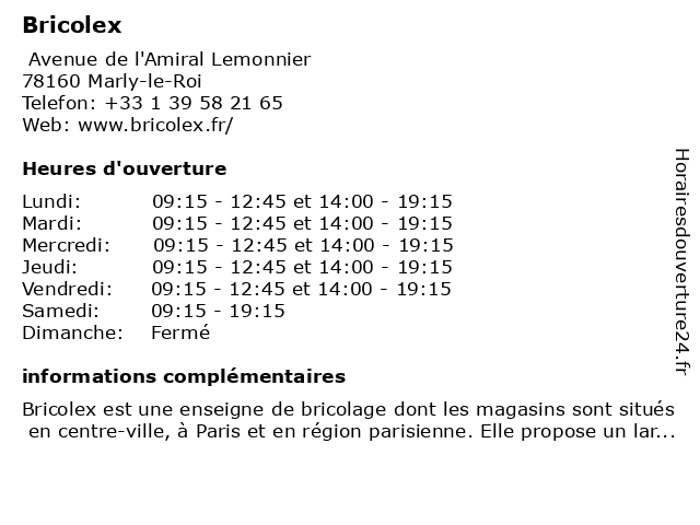 1 Bricolex (Distance: 2,10 km) 30 Rue de Poissy, 78100 Saint-Germain-en-Laye bricolage, bricolex, décoration, découpe de bois, découpe de verre, jardin, location outillage, peinture, plomberie, quincaillerie, éléctromenager 2 Bricolex (Distance: 5,96 km) 25 Place de l'Église, 92500 Rueil-Malmaison bricolage, bricolex, décoration, découpe de bois, découpe de verre, jardin, location outillage, peinture, plomberie, quincaillerie, éléctromenager 3 Bricolex (Distance: 10,03 km) 154 Rue Jean Jaurès, 92800 Puteaux bricolage, bricolex, décoration, découpe de bois, découpe de verre, jardin, location outillage, peinture, plomberie, quincaillerie, éléctromenager 4 Bricolex (Distance: 11,03 km) 46 Rue de Bezons, 92400 Courbevoie bricolage, bricolex, décoration, découpe de bois, découpe de verre, jardin, location outillage, peinture, plomberie, quincaillerie, éléctromenager 5 Bricolex (Distance: 12,60 km) 38 Rue Edith Cavell, 92400 Courbevoie bricolage, bricolex, décoration, découpe de bois, découpe de verre, jardin, location outillage, peinture, plomberie, quincaillerie, éléctromenager 6 Bricolex (Distance: 13,75 km) 35 Rue Louise Michel, 92300 Levallois-Perret bricolage, bricolex, décoration, découpe de bois, découpe de verre, jardin, location outillage, peinture, plomberie, quincaillerie, éléctromenager  |