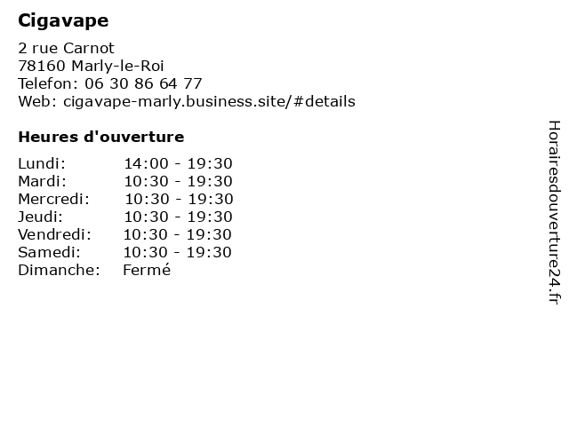 2 Sonrisa - L'Expérience de la Vape (Distance: 2,61 km) 74 rue du maréchal Lyautey, 78100 Saint Germain en Laye cigarette, cigarettes, cigaverte, de, e-liquide, electronique, electroniques, l'expérience, la, sonrisa, vape, vapote, vapoteur 3 Au Chesterfield Rouge (Distance: 2,90 km) 30 Rue des Louviers, 78100 Saint-Germain-en-Laye au, chesterfield, cigarettes, e-liquide, electronique, electroniques, rouge, store, vape, vapote, vapoteur 4 Le Cigare et la Plume (Distance: 5,08 km) 2 avenue Charles de Gaulle, 78150 Le Chesnay cigare, cigarette, cigarettes, e-liquide, electroniques, et, la, le, plume, vapotage, vapote, vapoteur, électronique 5 Le Calumet de la Vape (Distance: 8,08 km) 37 Avenue Jean Jaurès, 92150 Suresnes calumet, de, e-liquides, electronique, la, le, tabac, vap, vape, vapoteuse 6 Vapostore (Distance: 9,70 km) 21 Rue des Bourets, 92150 Suresnes cigarette, cigarettes, e-liquide, electroniques, vapostore, vapotage, vapote, vapoteur, électronique |