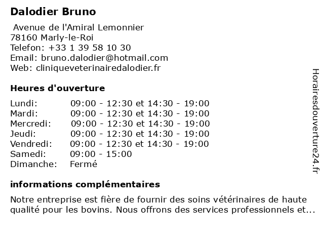 | Mercredi | 09:00-12:30 et 14:30-19:00 |