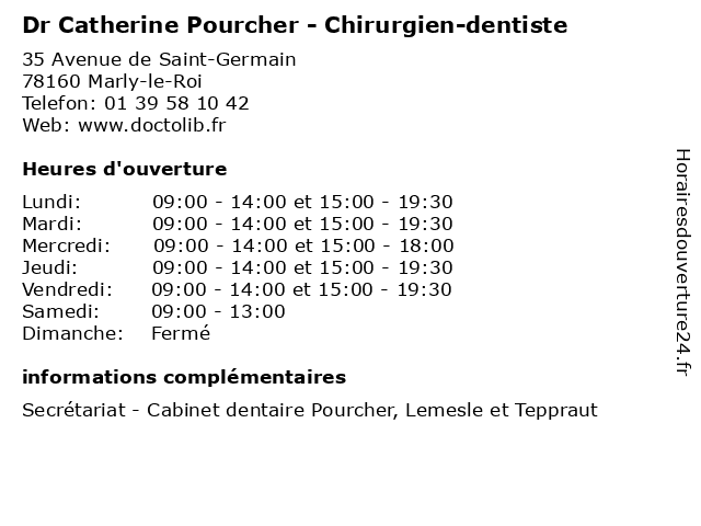 | Mercredi | 09:00-14:00 et 15:00-18:00 |