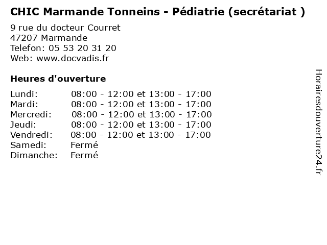 Termes de recherche pour CHIC Marmande Tonneins - Pédiatrie (secrétariat ):marmande, tonneins, chic, santé, secretariat, pédiatrie, docteur, consultation |