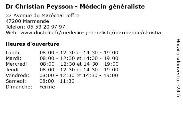 | Mercredi | 08:00-12:30 et 14:30-19:00 |